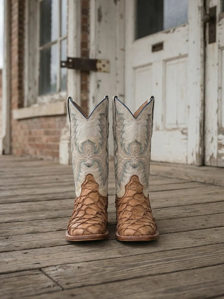 Regular price $548.00CORRAL MENS COGNAC WHITE PIRARUCU SQUARE TOE COWBOY BOOT STYLE A4050