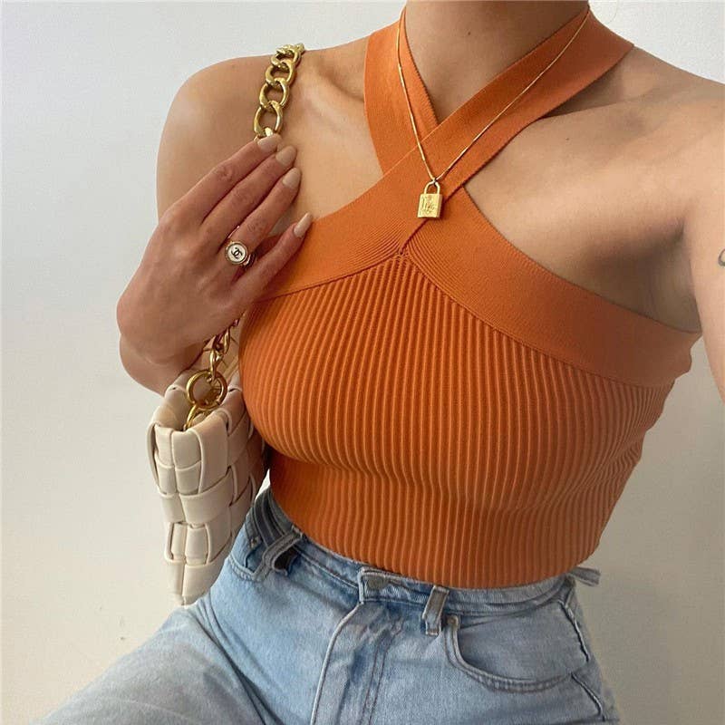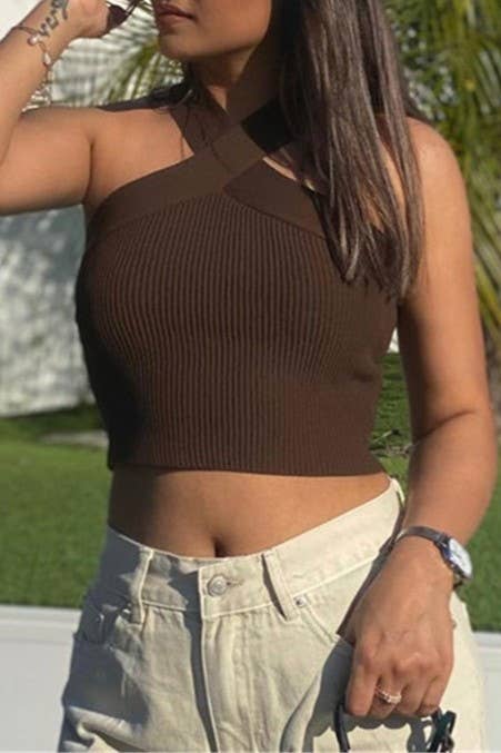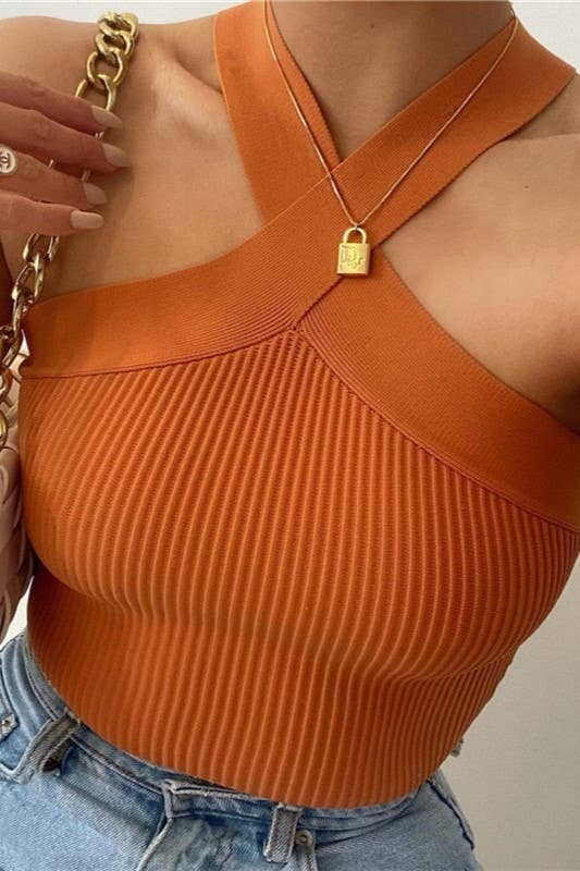Our product size standards are different, please check the size information before placing an order cross halter base rib knit tank top basic sleeveless vest cami_RCJY00378