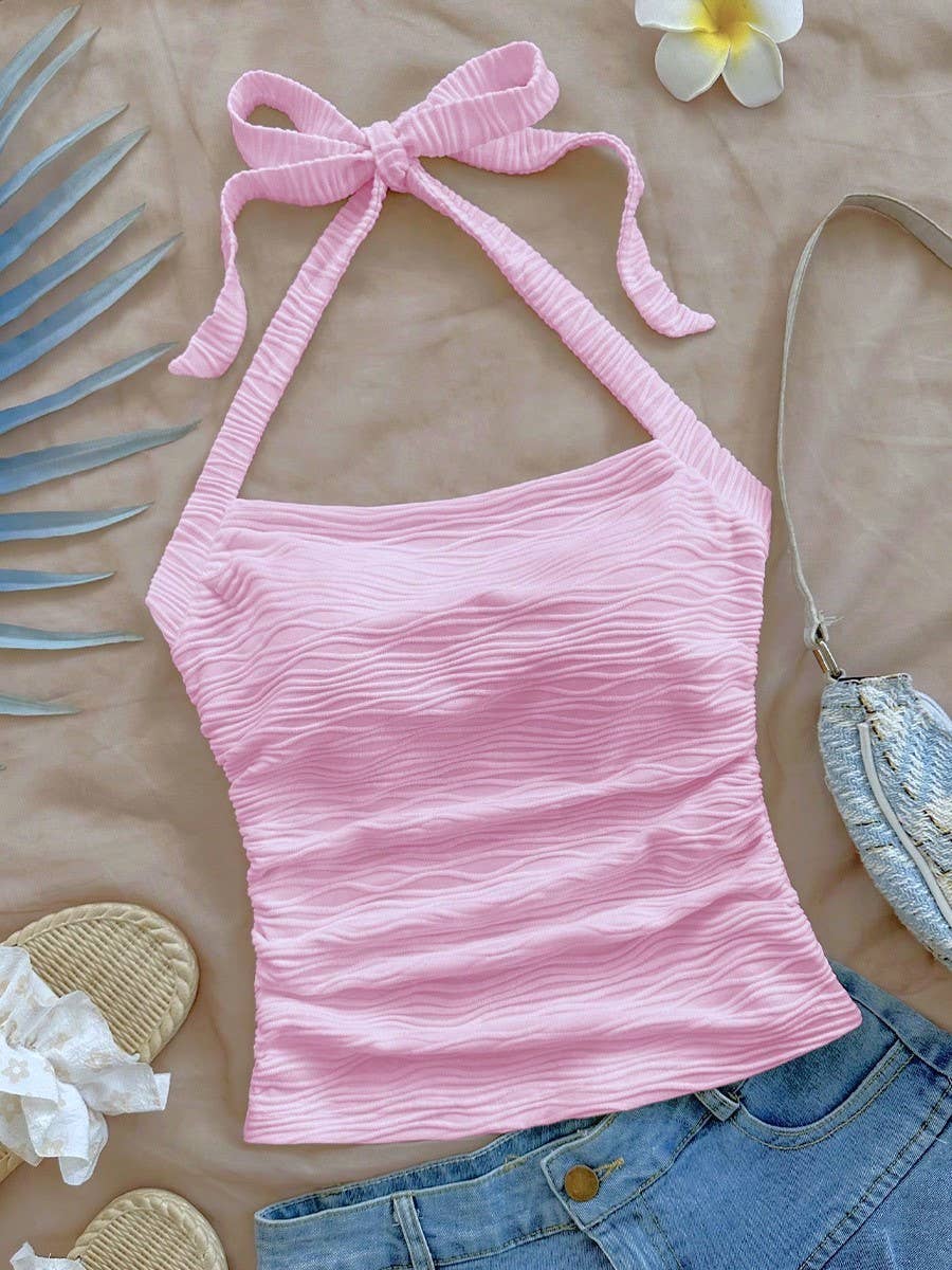 CUTE & STYLISH BOW TIE HALTER NECK CROP TOP_RCJW05302 Size Chart(Inch) Chest Length S 28.35 7.87 M 29.92 8.27 L 31.50 8.86 XL 33.86 9.45 Women shackets,crochet cardigan,cable knit sweater,ruffle dress,blouse,puff sleeve top,denim skirts,fall top,fall dress,blazer,Knit cardigan,Midi dress,Laple Shirts,Tank Top,Knit Top,High waist pants,Button down Jacket,Skirt,Ruffle blouse,Sweatshirt,hoodie,midi dress,knit sweater,2 piece set,denim jacket,plaid shirt,zip up jacket,wide leg pant,fur coat,tweed jacket,2025 Women Apparel