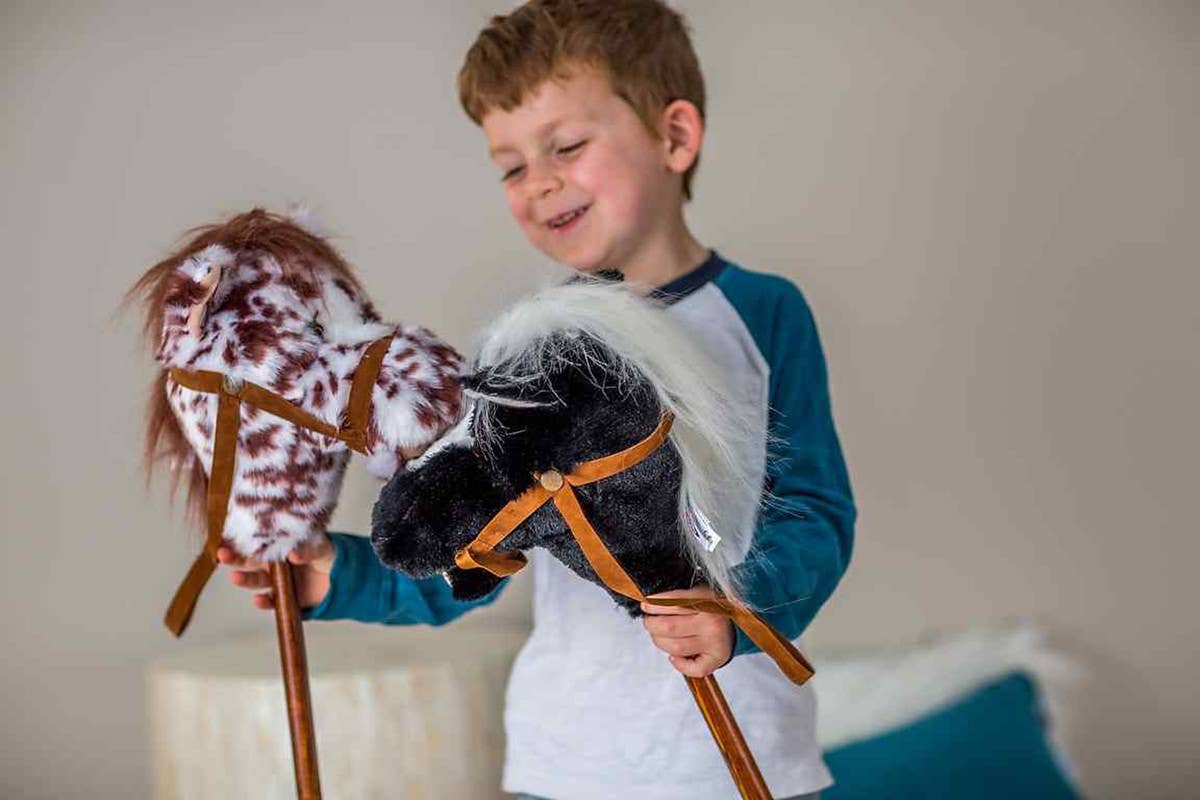 Stick horses have been amongst our most popular toys since Mary Meyer introduced the in 1963. Now a classic, the real wood stick is super sturdy. Easy Ride'Ums neigh when the ear is pressed.