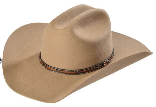 This Justin 2X felt cowboy hat is made with 100% wool in a subtle fawn brown color. Made with a classic cattleman's crease, this hat has a 4" brim and includes a thin hatband.