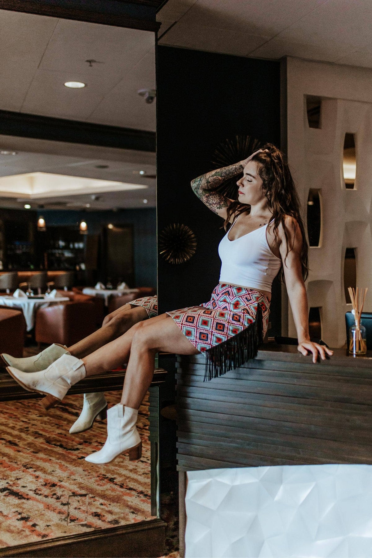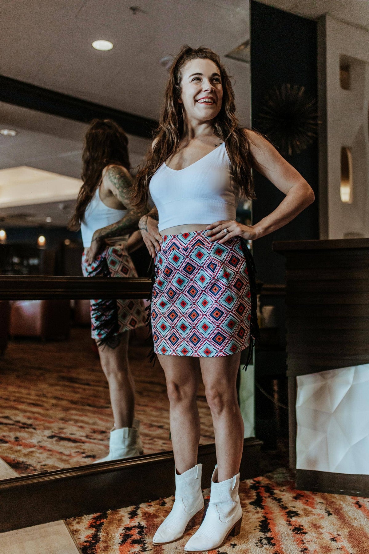 -Skort -have short under -western pattern 92%POLYESTER 8%SPANDEX