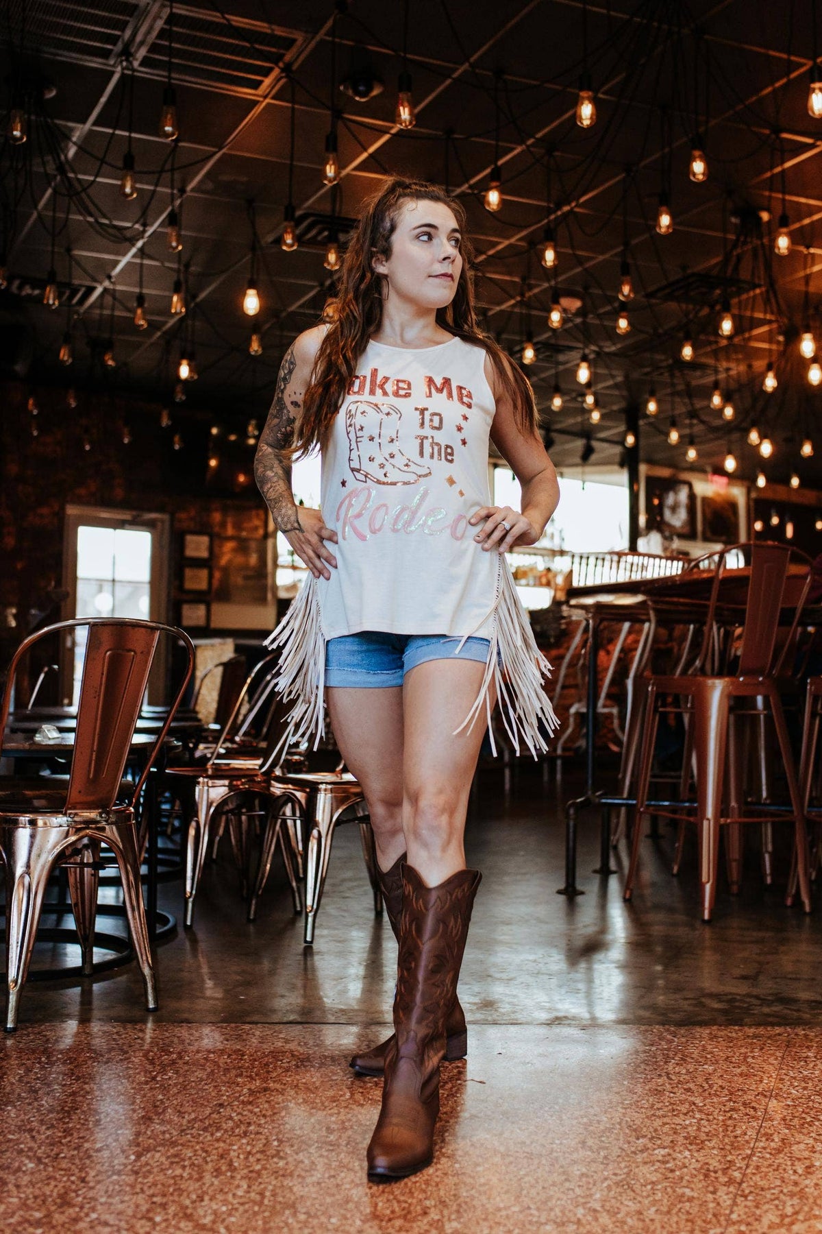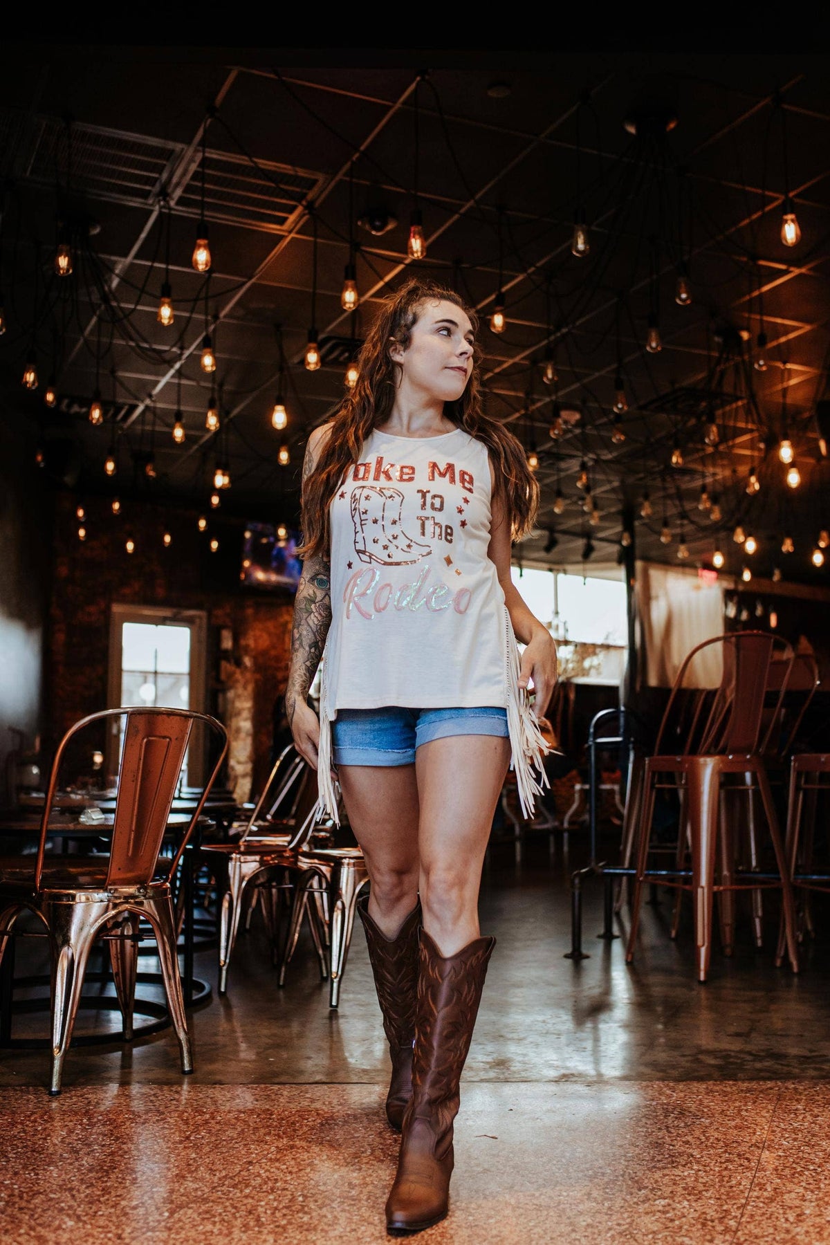 20%RAYON 75%POLYESTER 5%SPANDEX -western top -fringe top -side slit -sequins top