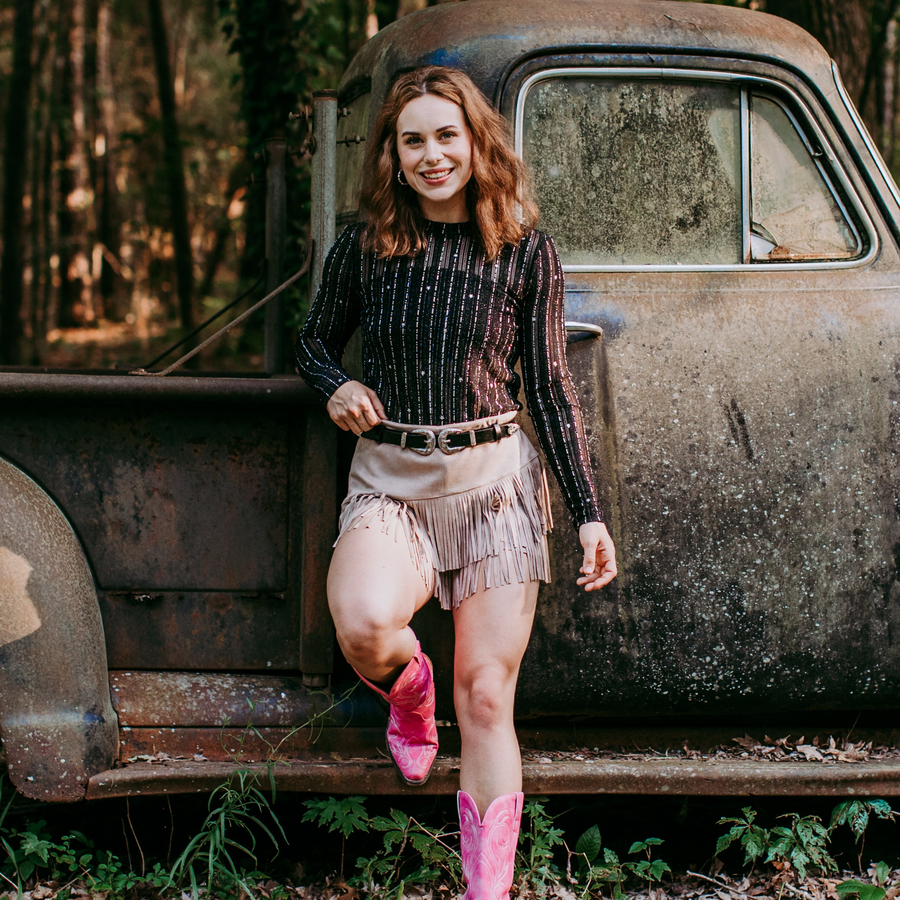 Night Fever Long Sleeve Foil Embellished Mesh Top with Silver accents