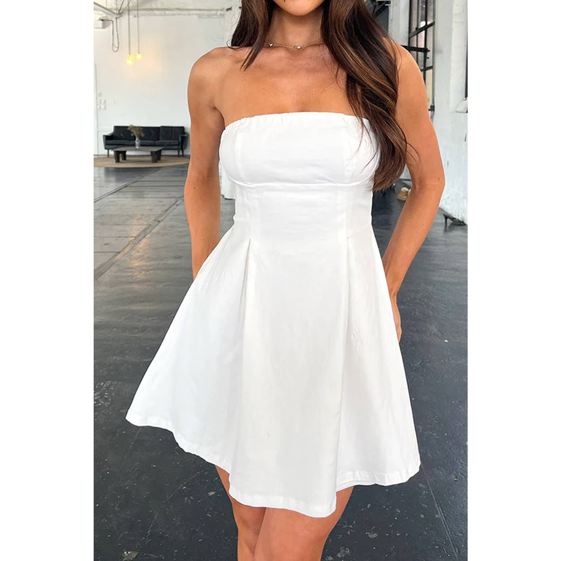 Features: Off Shoulder Elegant Tube Cuff A Swing Short Dress