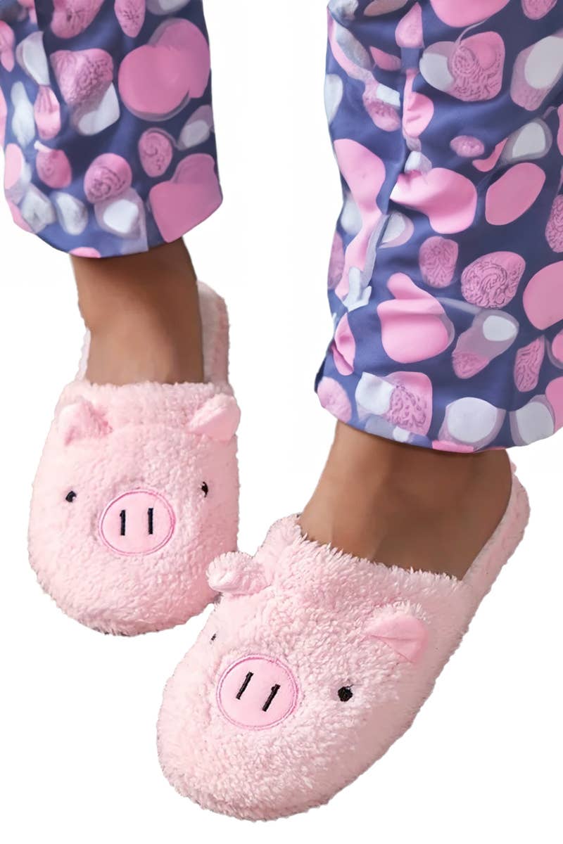 Piggy Fuzzy Terry Fleece Foam Lounge Slippers