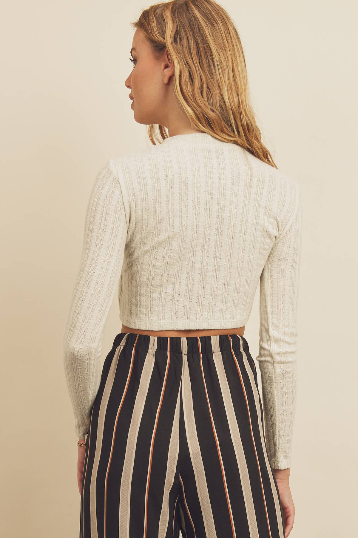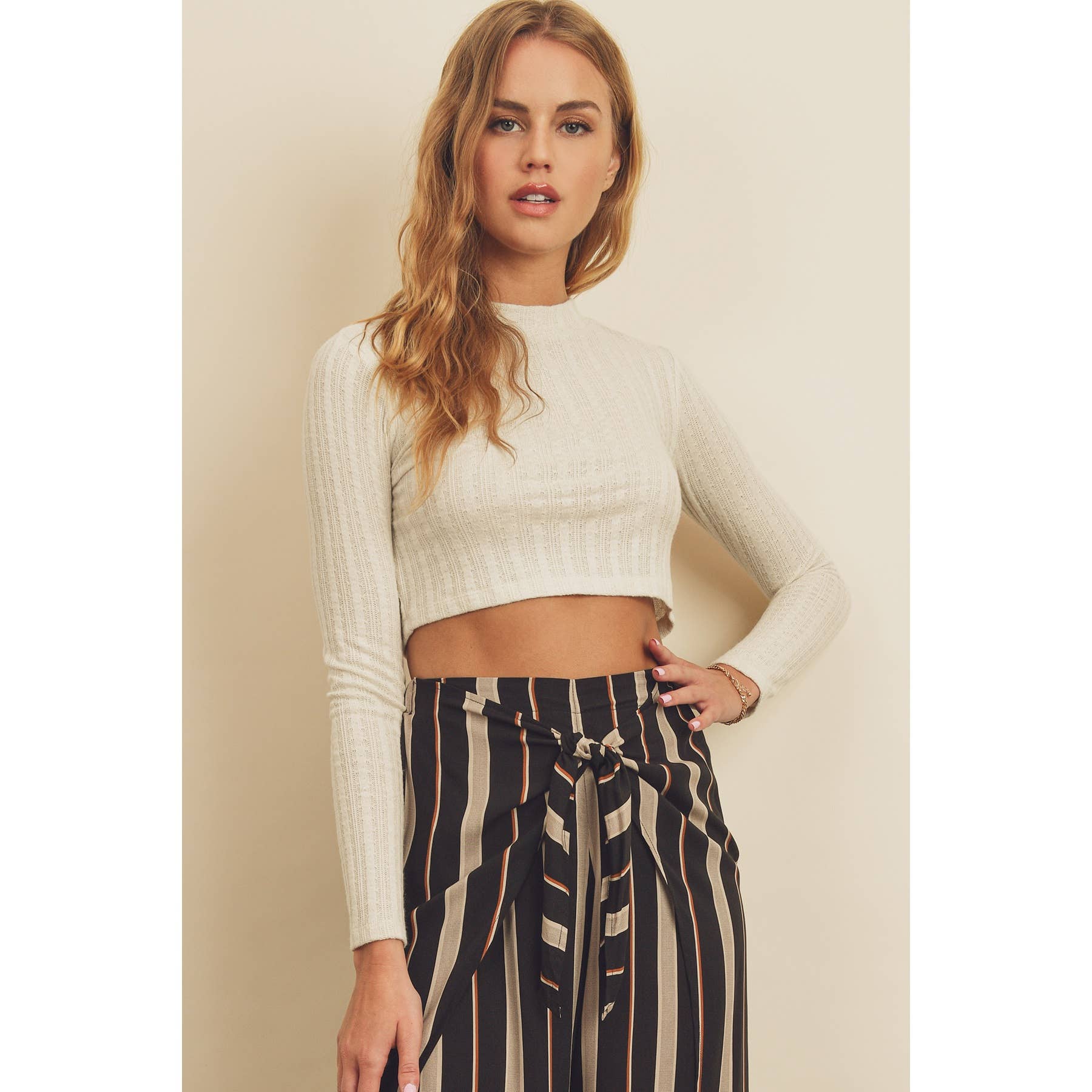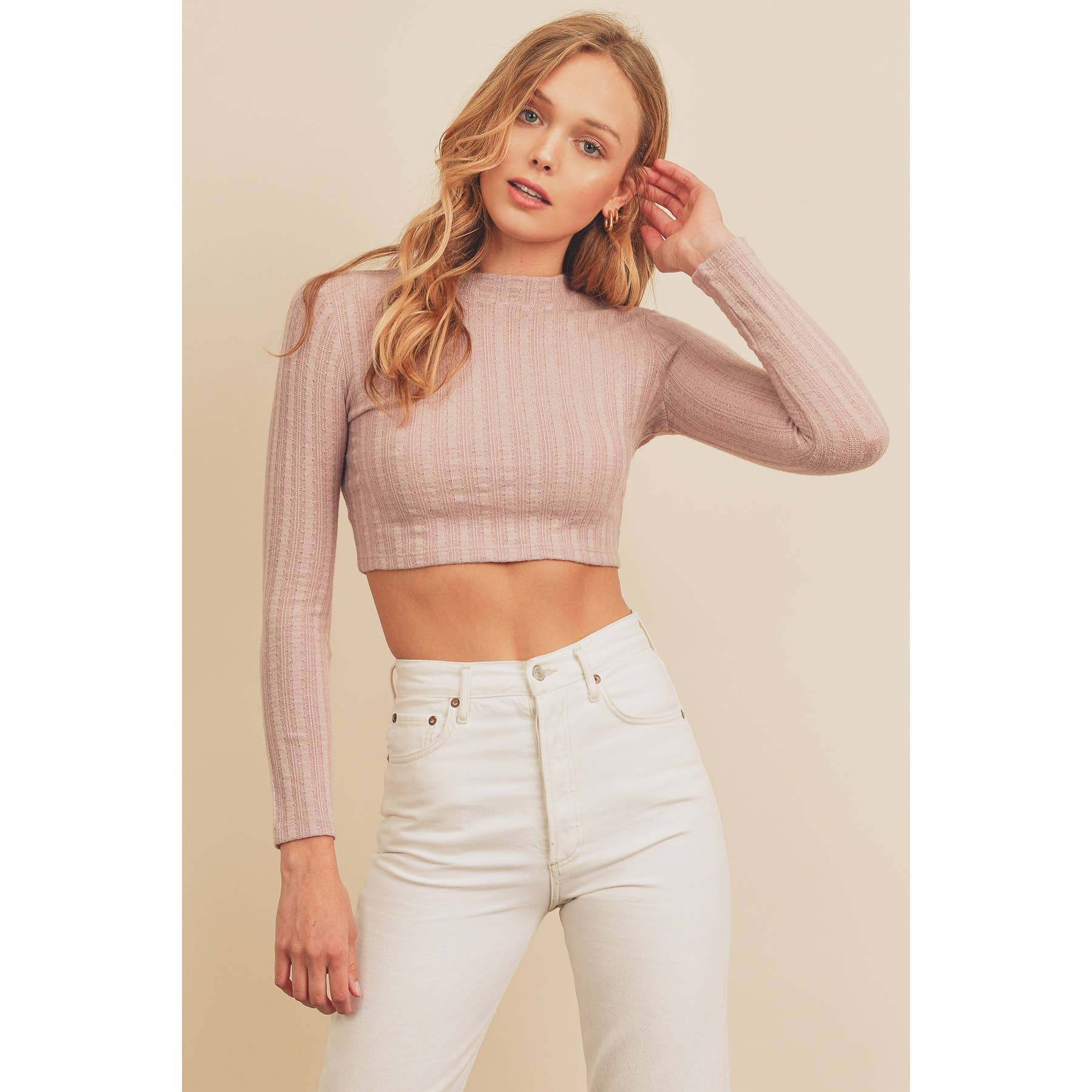 Soft, lightweight knit top with long sleeves and cropped length. Model in SAGE is 5'9" and wearing size Small.