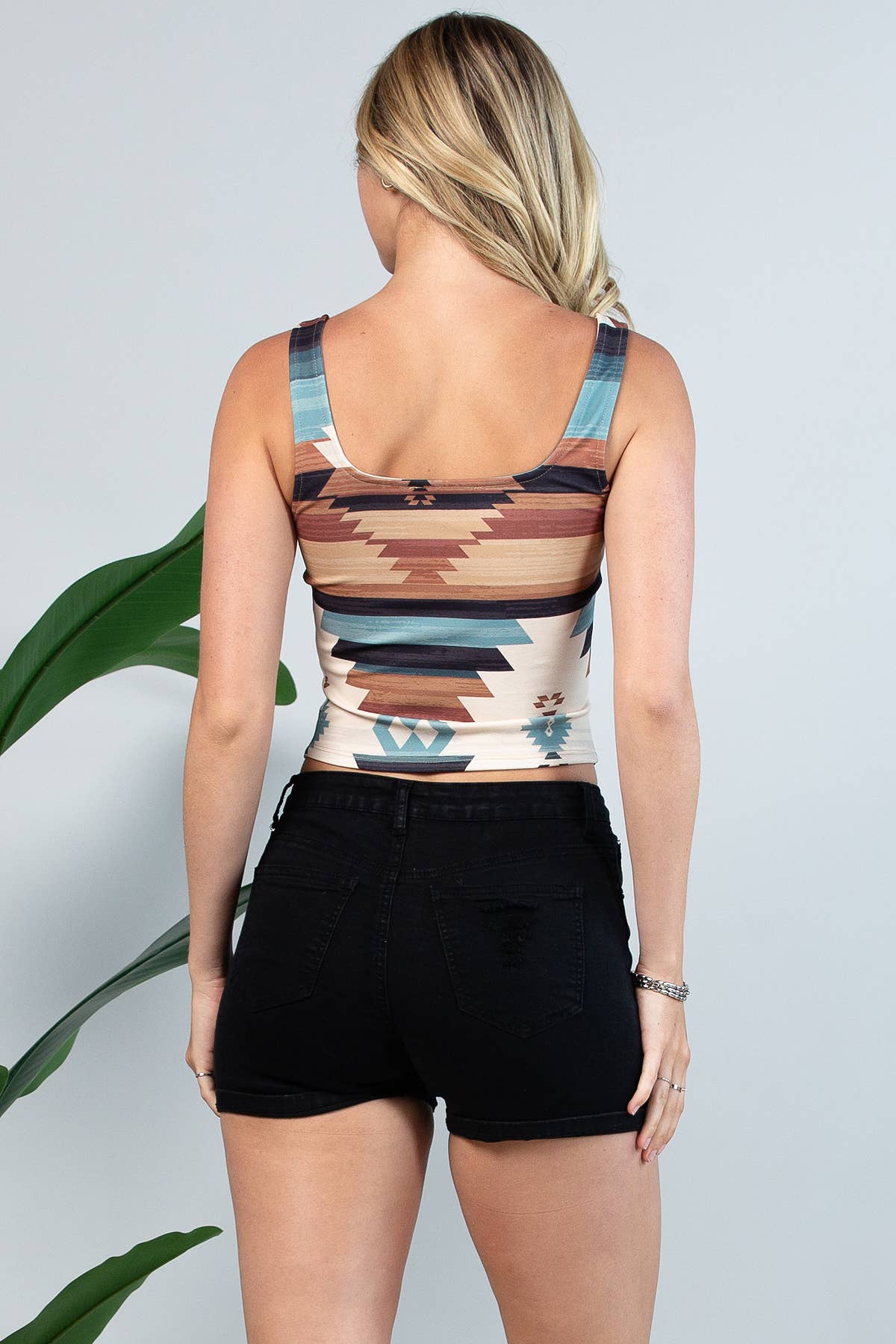 T1352-Tribal-Tribal Western Print Square Neck Crop Top