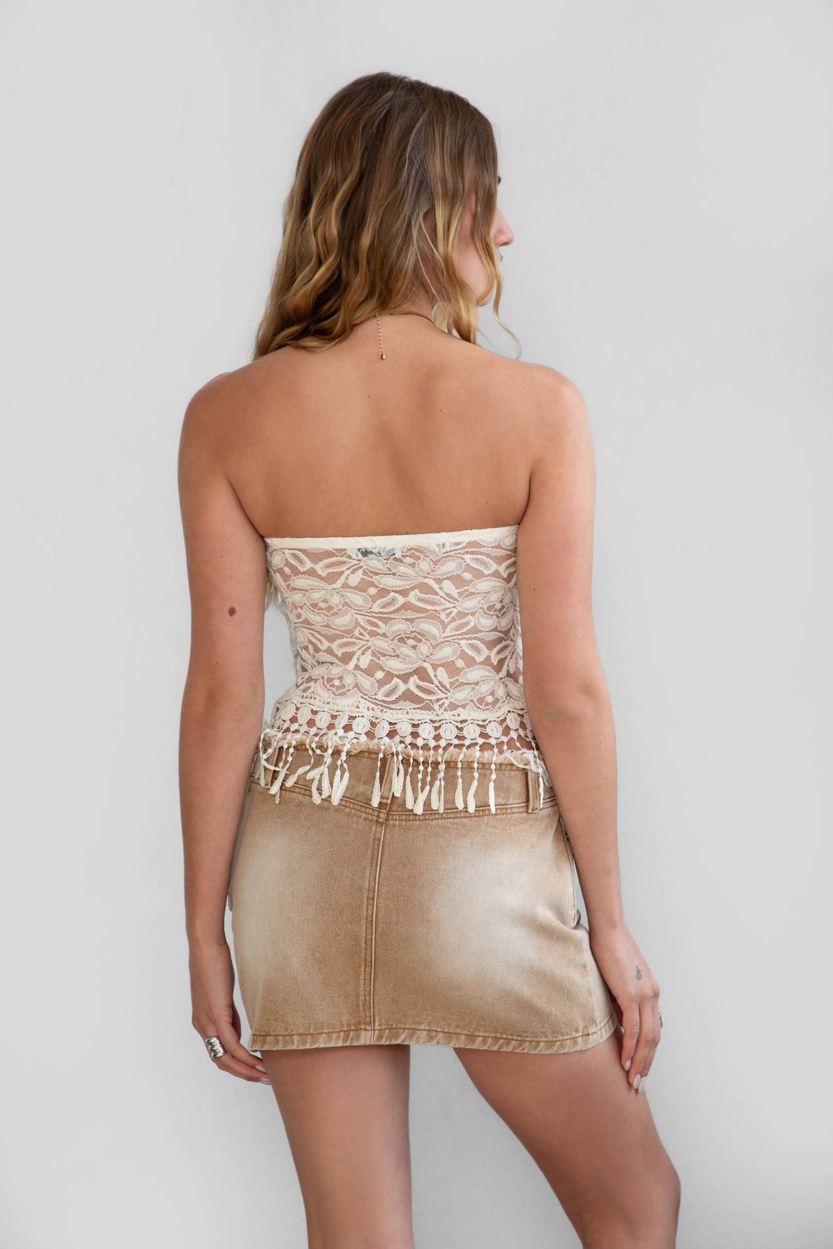 WILDER Floral Lace Fringe Strapless Bandeau Top (Copy)